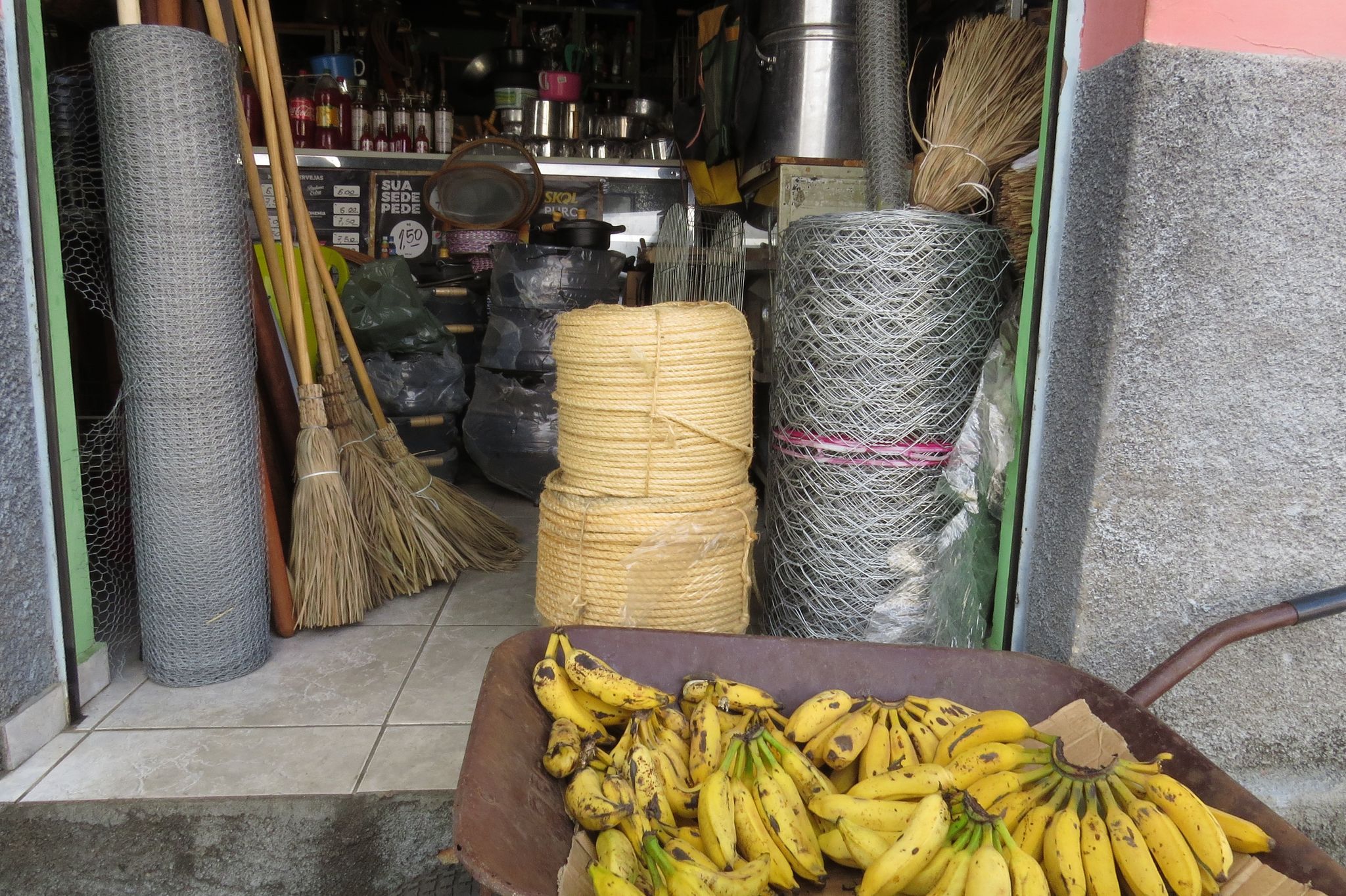 Por dentro do armazém é assim também, tudo abarrotado de coisas penduradas, colocadas em prateleiras ou mesmo no chão, sem qualquer ordem. Mas com certeza, o dono encontra tudo, rapidinho. O dono é Roney de Almeida, mais conhecido como Roninho, que herdou o armazém do pai, que herdou do seu avô.