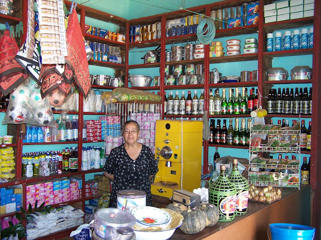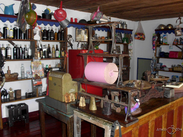 Mesmo com o espaço pequeno das vendas, nelas, cabia de tudo e dificilmente não se encontrava o que se procurava. Desde linha, agulha, carne de sol, discos de vinil, réstia de alho, xarope de groselha, colcha de chenile, fitas k-7, salame, bucha, fumo de rolo, manivela para pipa, vara de pescar, anzol, bacalhau, prego, bolinhas de gude, ratoeira, enxada, açúcar, ki-suco, picolé, pilhas para rádio, lâmpadas, arroz e feijão vendidos em granel, brinquedos, pratos, canecas, carrinho de mão, bules, raticidas, naftalina, gaiolas, doces, balas, sapatos, shampoo, banha de porco, lápis, borracha, linguiça, sal, querosene, lamparina, marmelada, baldes, trempe para fogão a lenha, esmalte, tachos de cobre, maria-chiquinha, sabão, pasta de dente, leite, queijo, farinha, fubá, panelas, penico, bacias, pão de sal, Folha Mariana, tabuada, café moído na cara do freguês e em algumas vendas, o café era também coado na cara do freguês, se ele preferisse. Era tudo bem embrulhado. (foto abaixo de Arnaldo Silva)