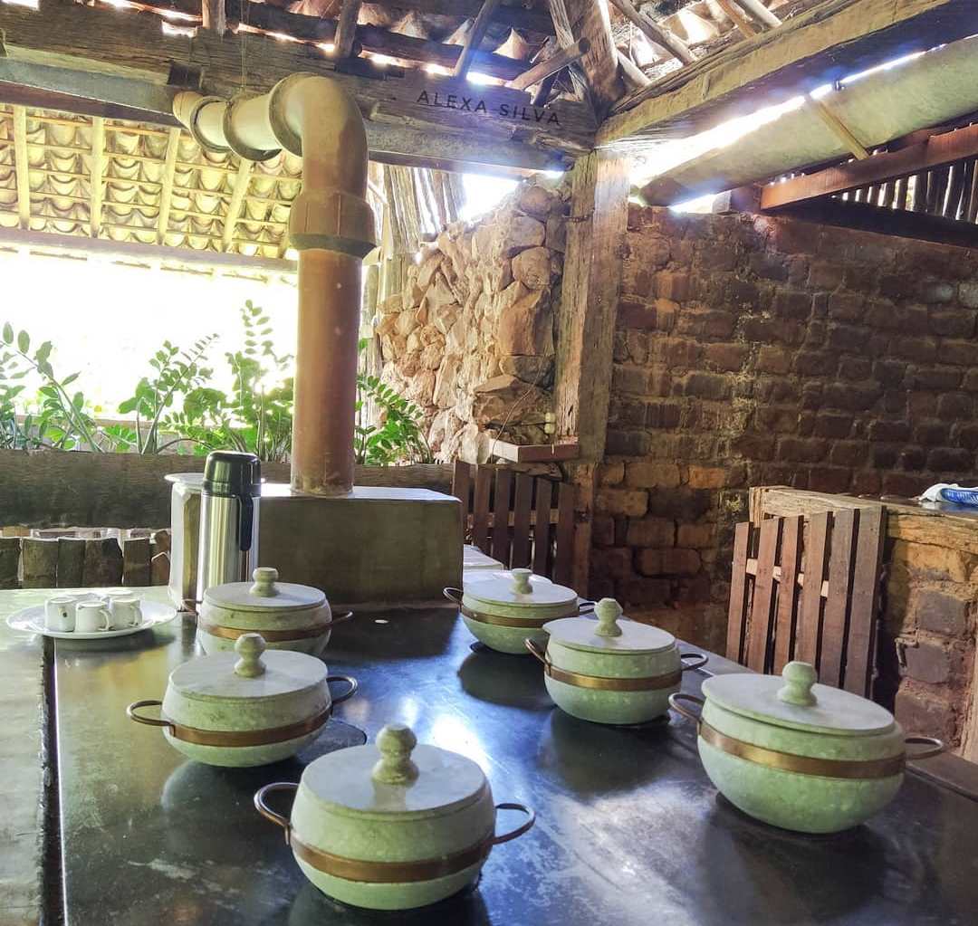 Um lugar tranquilo, aconchegante, num casarão em estilo colonial, com traços sóbrios, rústicos e poéticos, além, claro, da genuína cozinha mineira, feita fogão a lenha e panelas em pedra sabão. Com certeza, um lugar para passar horas super agradáveis.