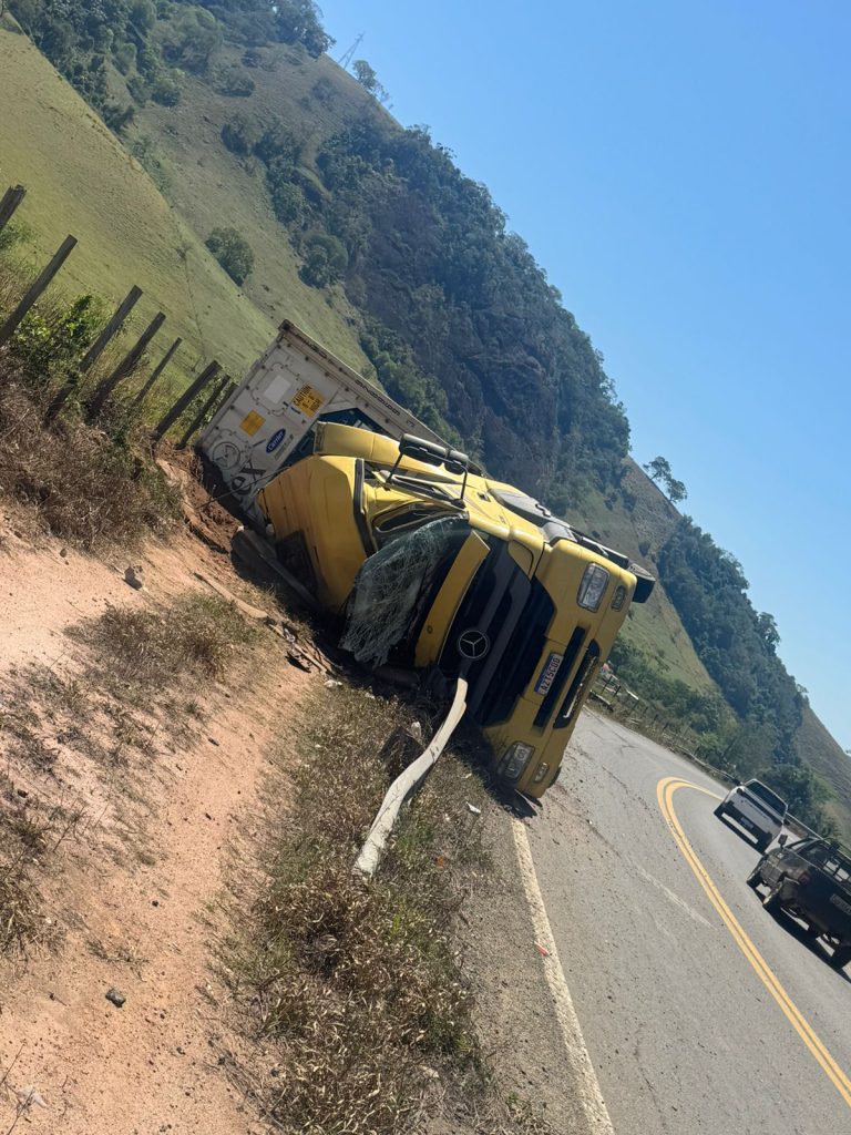 Um grave acidente foi registrado na manhã de terça-feira (30/09), por volta das 10h45, no km 12 da rodovia MG-133, em Tabuleiro, na Zona da Mata mineira. De acordo com a Polícia Militar Rodoviária, um caminhão-trator com semirreboque, que transportava um contêiner, tombou às margens da via. O motorista ficou preso às ferragens e foi encontrado já sem sinais vitais.