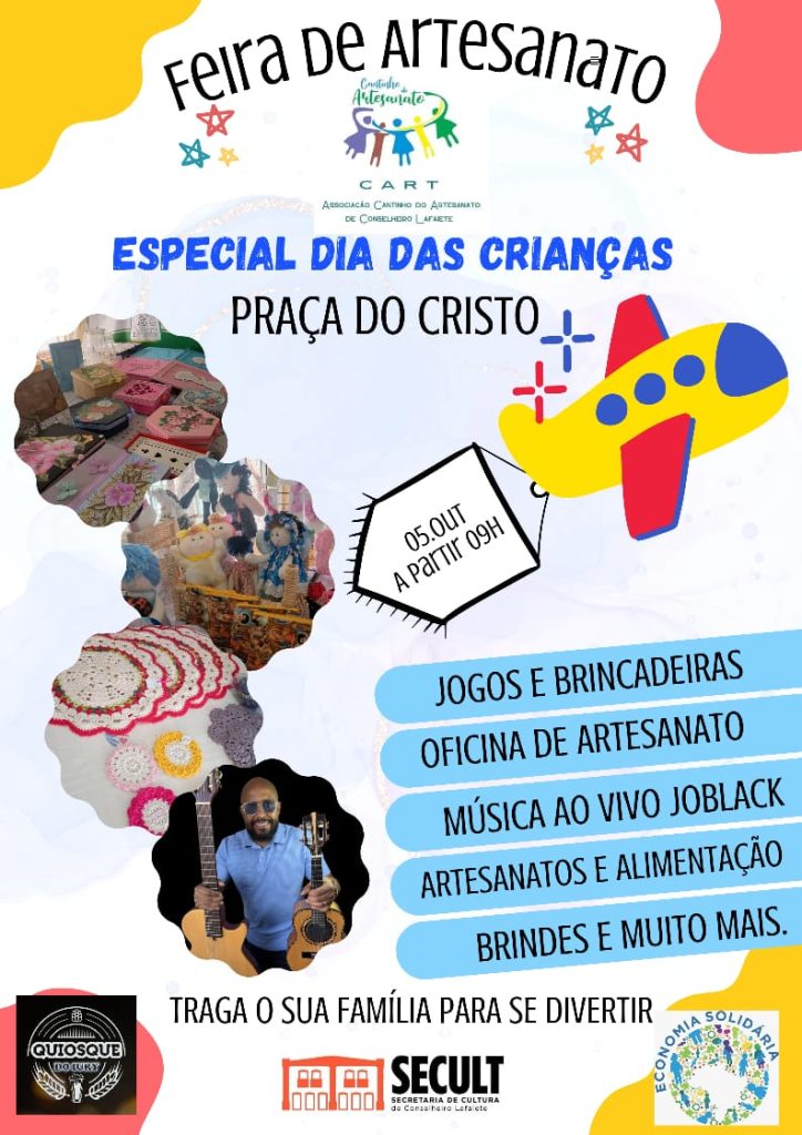 A programação contará com jogos e brincadeiras, oficina de artesanato, música ao vivo com JOBLACK, além de espaço para a venda de artesanatos e alimentação variada. Haverá ainda distribuição de brindes e outras surpresas para o público.