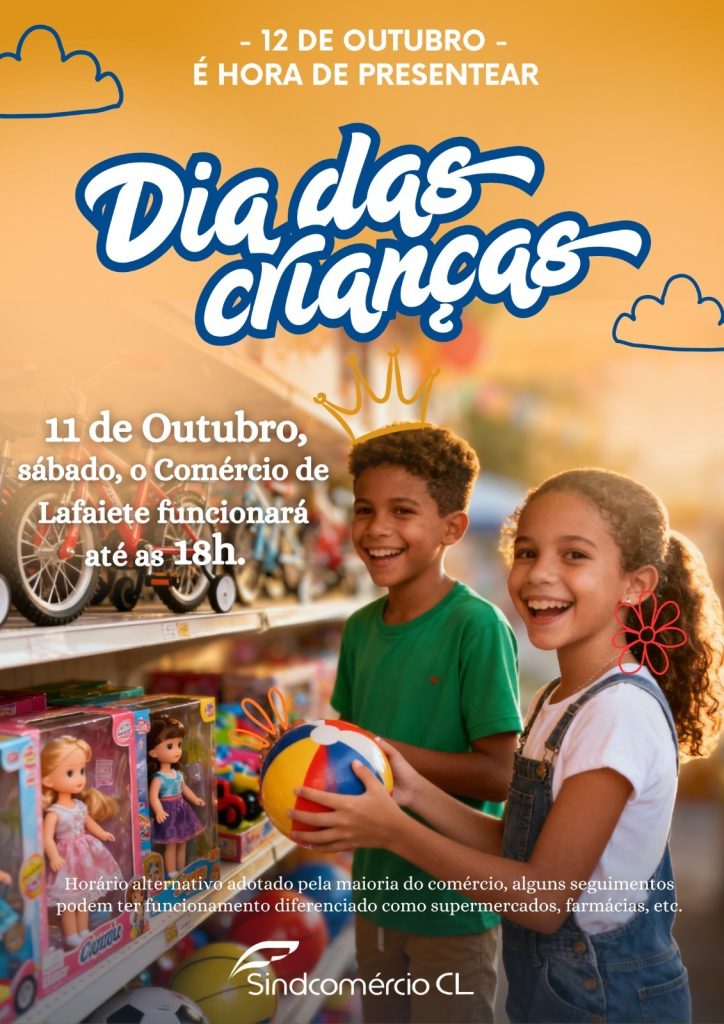 “Mais do que um presente, o que se busca é criar momentos de alegria e carinho. O Dia das Crianças é isso: emoção e lembranças boas que ficam”, reforçou Bento. Neste fim de semana, o comércio de Lafaiete promete não apenas boas vendas, mas também sorrisos, movimento e o colorido que só a infância sabe trazer.