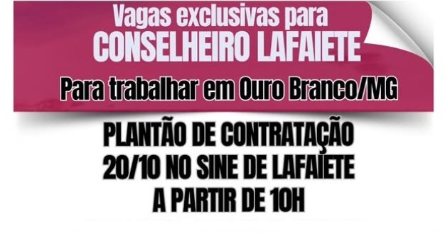 O Supermercado Farid, uma das maiores redes do setor de alimentos e serviços da região, realizará um plantão de contratações nesta segunda-feira, 20 de outubro, no SINE de Conselheiro Lafaiete, a partir das 10h. As vagas são exclusivas para moradores de Conselheiro Lafaiete, com oportunidades para trabalhar na nova unidade do Farid em Ouro Branco (MG).