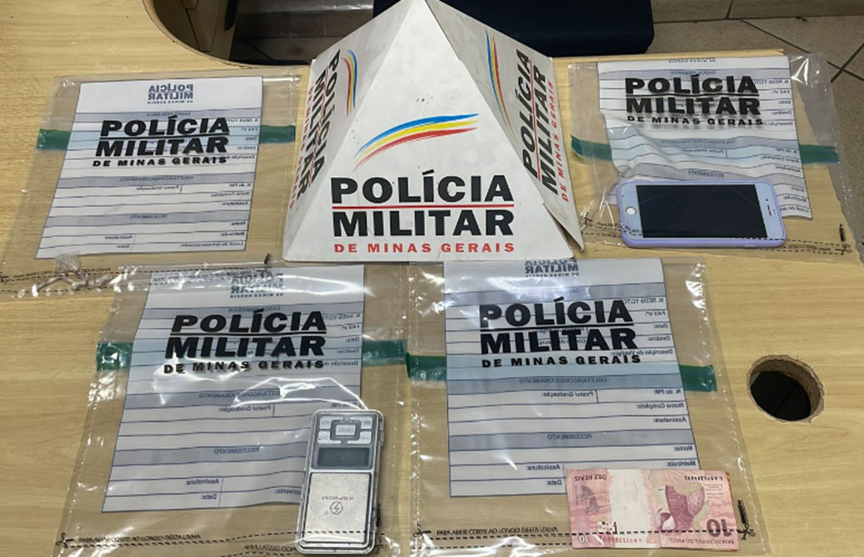 A Polícia Militar realizou ações decisivas no combate ao tráfico de drogas em Ouro Branco, resultando em uma prisão e duas apreensões entre os dias 17 e 18 de outubro. Na sexta-feira (17), durante patrulhamento pelo Bairro Matriz, os militares avistaram dois menores em atitude suspeita. Ao notarem a presença da guarnição, eles entraram em um bar carregando uma bolsa. Durante a abordagem, nada de ilícito foi encontrado com os jovens, porém, ao vistoriarem a bolsa, os policiais localizaram 10 buchas de maconha e R$ 35 em dinheiro.