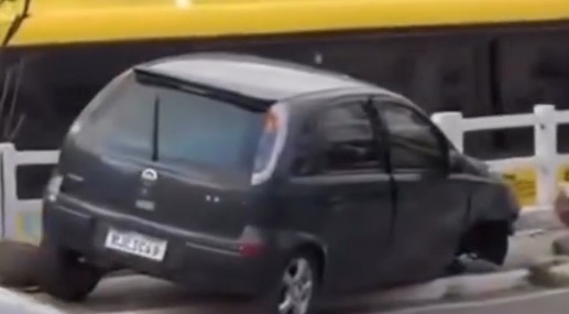 Já no bairro Campo Alegre dos Carijós, um GM Corsa cinza desceu desgovernado pela Rua Waldemar Pena, colidiu em dois veículos estacionados — um Fiat Pálio e um Renault Logan — e, em seguida, atingiu a mureta de proteção do Terminal Rodoviário, quebrando parte da estrutura. O motorista fugiu do local, abandonando o carro, que foi recolhido ao pátio credenciado.