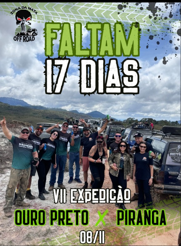 A contagem regressiva já começou: faltam 17 dias para acelerar rumo à VII Expedição Ouro Preto x Piranga! Prepare o 4×4, reúna os amigos e venha viver uma das maiores aventuras off-road da região.