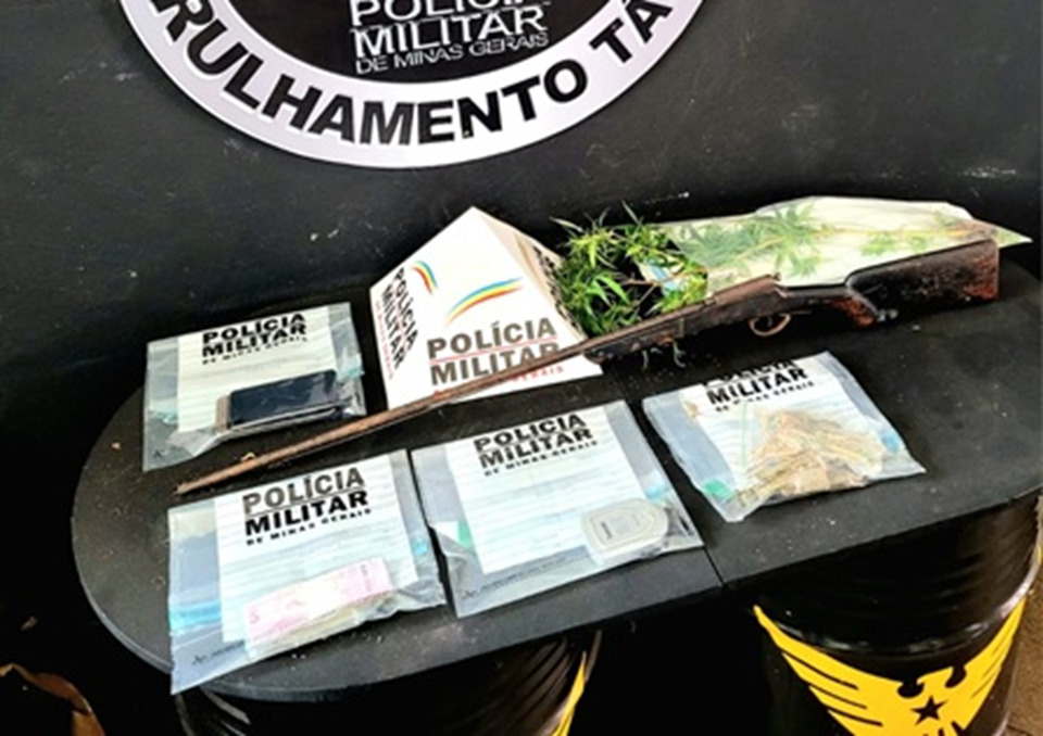Na manhã de quinta-feira, 23 de outubro, a Polícia Militar realizou uma operação no Bairro Gagé, em Conselheiro Lafaiete, com o objetivo de cumprir mandados de busca e apreensão em desfavor de uma mulher de 47 anos residente na região. Durante a ação, os militares localizaram 10 pés de maconha, três tabletes e um invólucro contendo a mesma substância, além de uma balança de precisão, quatro telefones celulares, R$ 488,00 em dinheiro e uma espingarda.