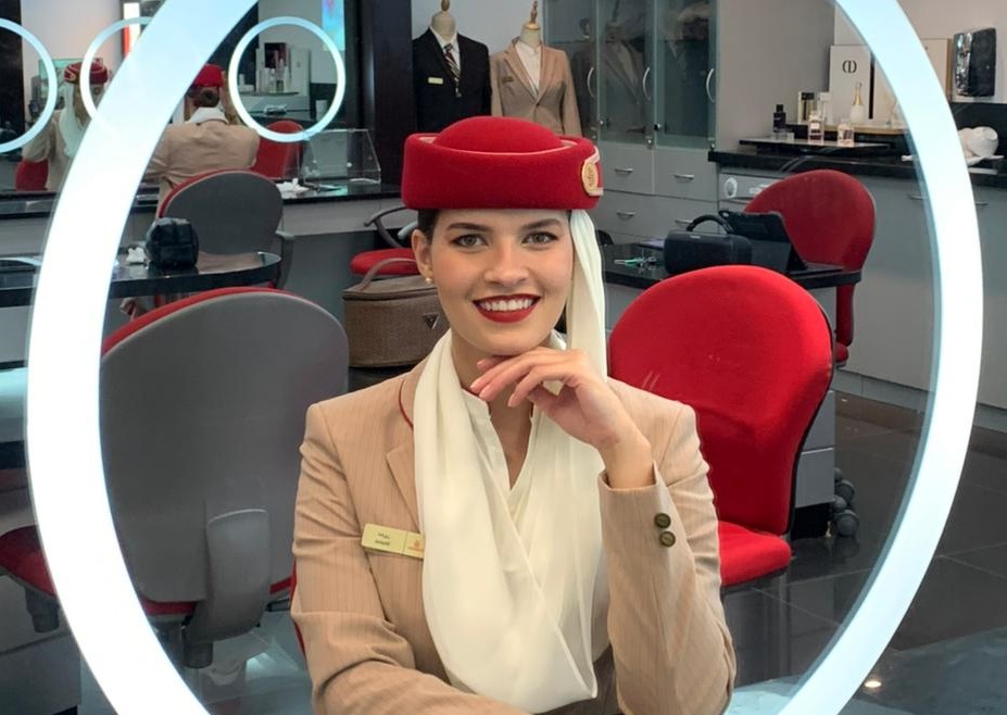 A jornada até a Emirates foi longa e exigente. Sharon tentou o processo seletivo quatro vezes até ser aprovada. “O processo tem cinco etapas, todas eliminatórias. Enviamos o currículo, o vídeo de apresentação, depois vem o screening day e o assessment day, que são bem intensos e cansativos. No final, há a entrevista, que pode ser online ou presencial. Passei na vez em que fiz presencialmente, acho que pude me expressar melhor pessoalmente.”