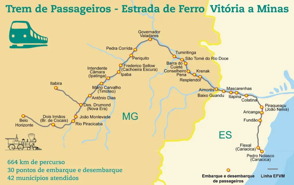 O trem é um elo entre Minas Gerais e o Espírito Santo, conectando cidades pequenas, paisagens de montanha e trechos que margeiam o Rio Doce. A inclusão de Itabira – cidade histórica conhecida pela mineração – reforça esse papel de integração regional e amplia as possibilidades para quem prefere viajar com tranquilidade, sem enfrentar o trânsito das estradas durante a noite.