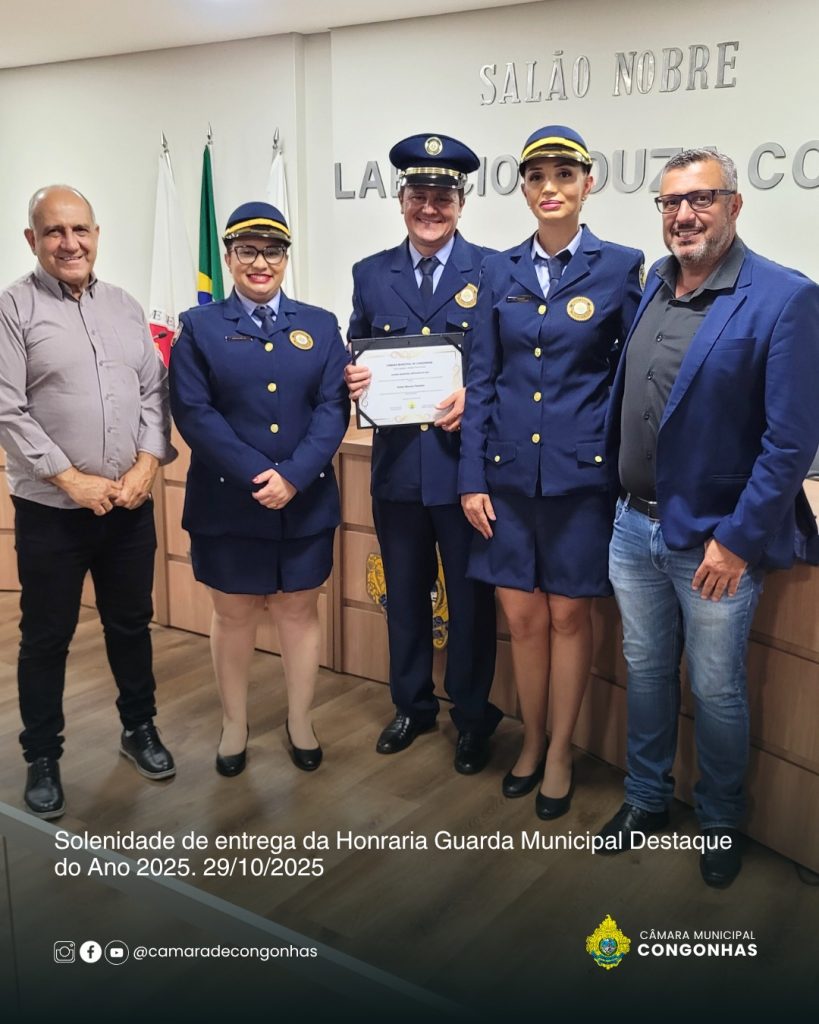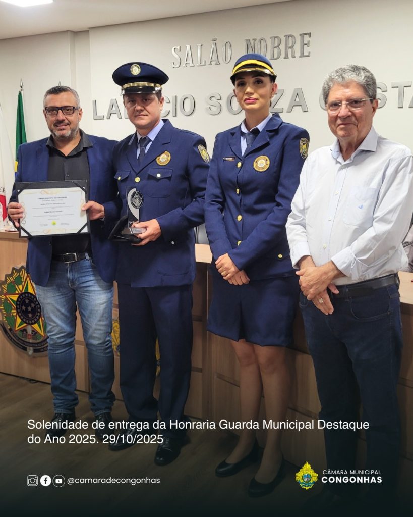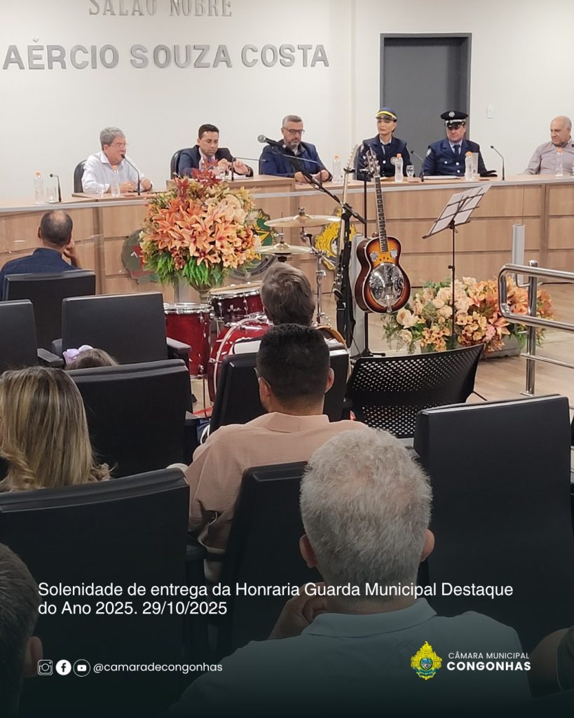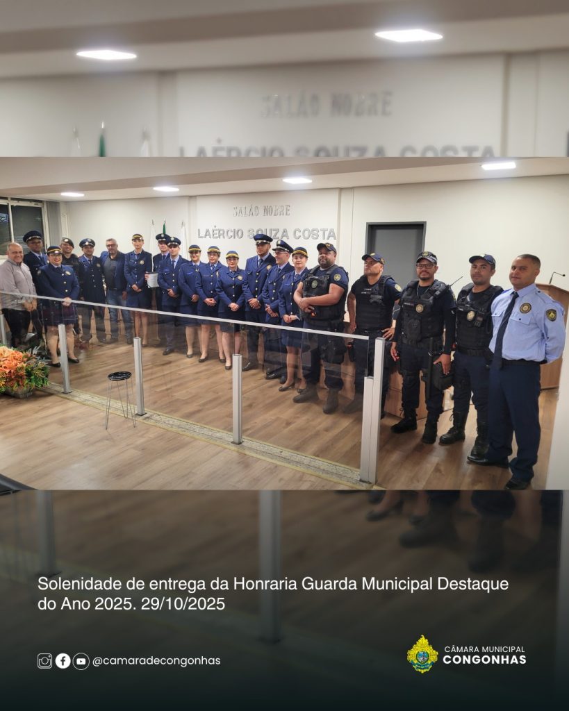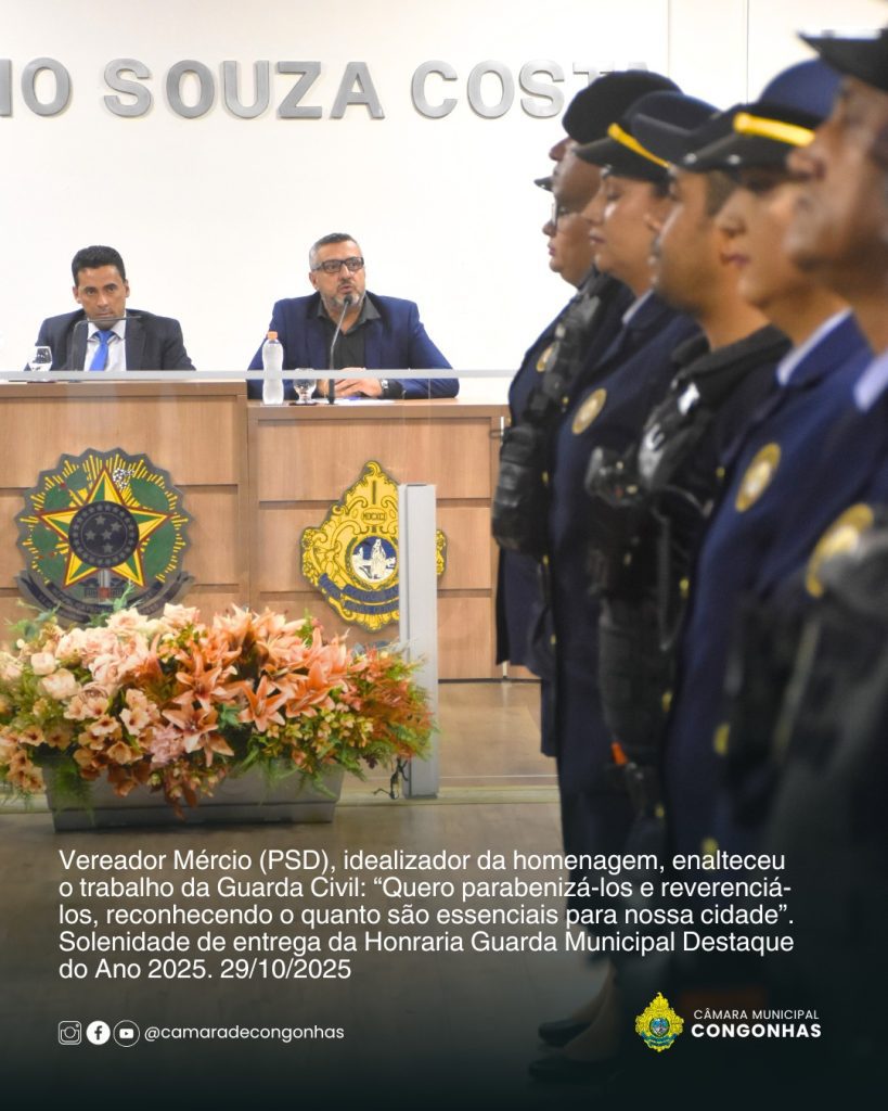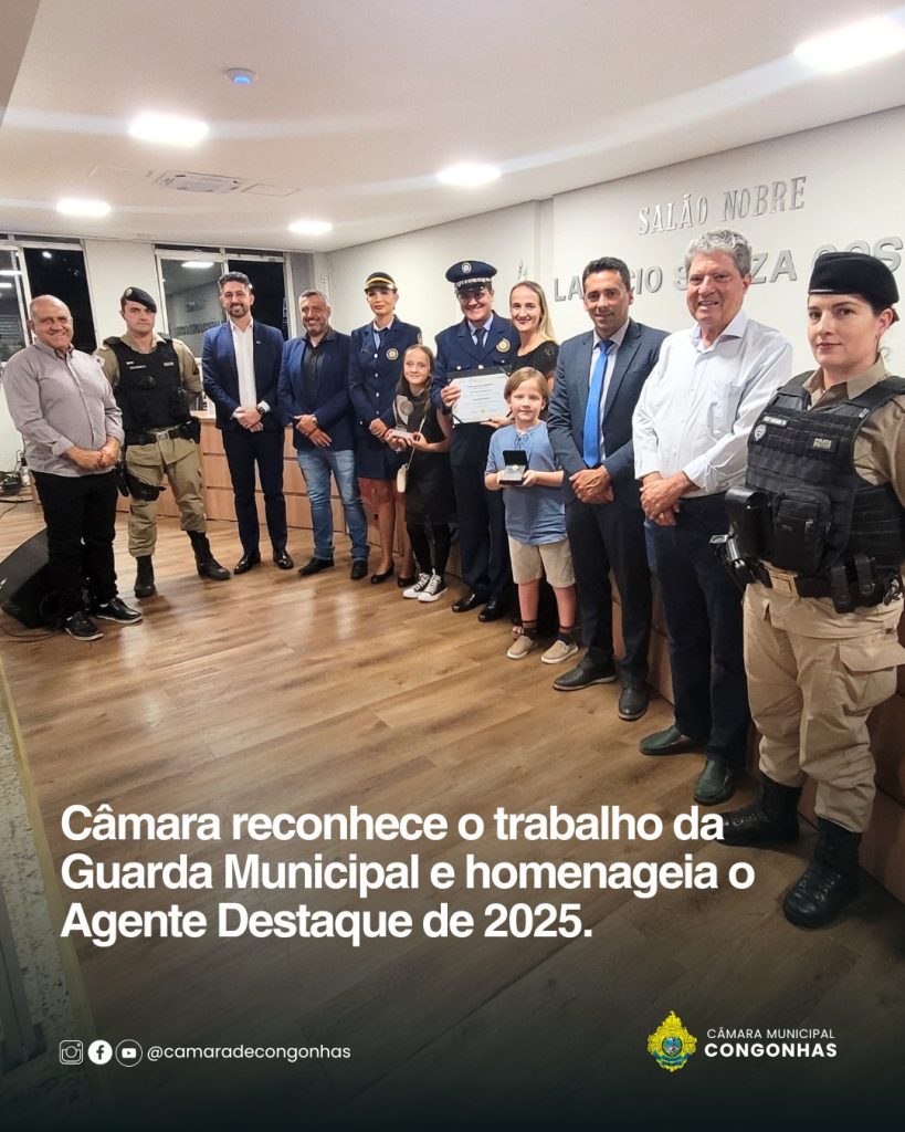 Na noite desta quarta-feira, 29 de outubro, a Câmara Municipal de Congonhas realizou a primeira Solenidade de Entrega da Honraria “Guarda Municipal Destaque do Ano 2025”, um reconhecimento criado pela Resolução nº 425/2025, proposta pelo vereador Mércio (PSD). A iniciativa tem como objetivo valorizar o papel da Guarda Civil Municipal (GCM) na promoção da segurança pública e do bem-estar da população, além de destacar servidores que se sobressaem em suas funções.