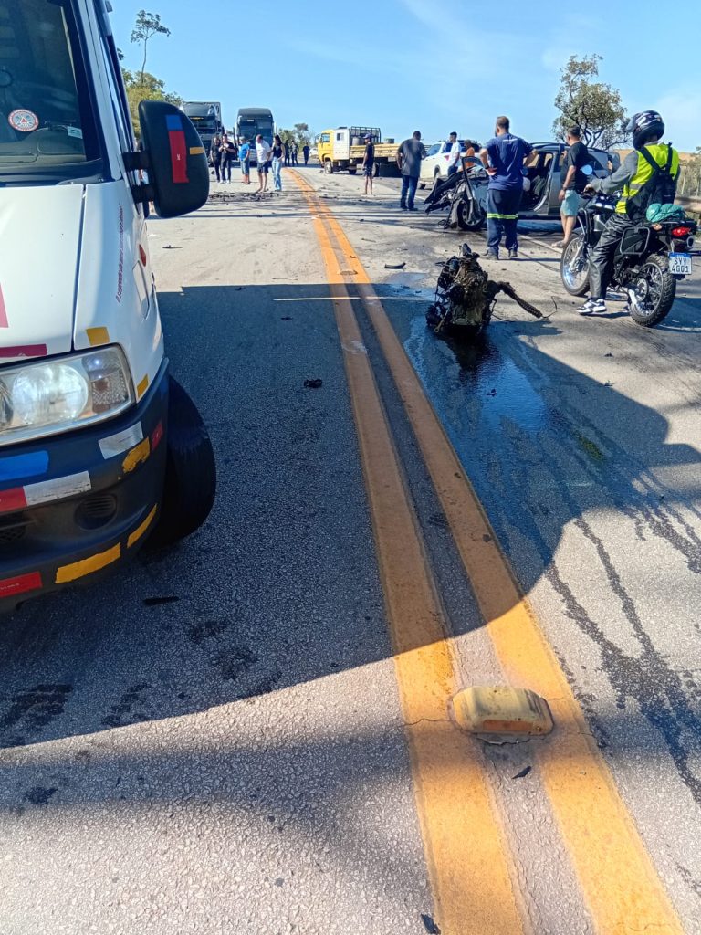 Um grave acidente entre dois carros causou a interdição total da BR-040 nos dois sentidos na região próximo ao ponto conhecido como Vaquinha da Nevada, nesta manhã de sábado (22). O impacto entre os veículos foi tão forte que o motor de um dos carros se desprendeu completamente da estrutura e caiu no meio da pista, aumentando ainda mais o risco para outros motoristas.