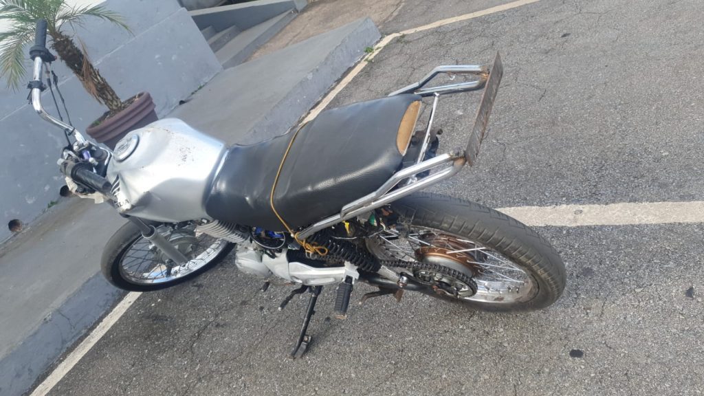 Na tarde deste sábado (22/11), por volta das 16h, uma equipe da Polícia Militar Rodoviária realizava patrulhamento pela BR-040, na altura do km 613, em Conselheiro Lafaiete (MG), quando avistou uma motocicleta de cor prata, circulando sem placa de identificação. Ao perceber a presença da viatura, o condutor empreendeu fuga, seguindo em direção ao perímetro urbano da cidade. Após acompanhamento, ele foi interceptado e abordado.