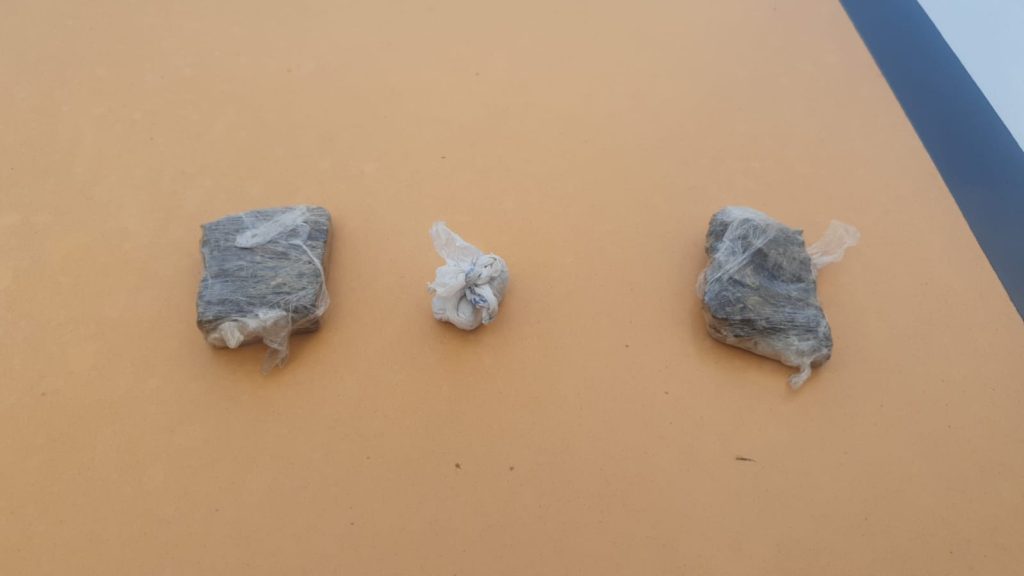 Durante a busca pessoal, os militares encontraram com o suspeito dois tabletes e uma porção de substância esverdeada semelhante à maconha. Segundo o próprio condutor, o material seria vendido em um evento que ocorreria em Congonhas. O homem apresentava ainda sinais evidentes de embriaguez. A verificação dos dados da motocicleta revelou indícios de adulteração dos sinais identificadores, caracterizando o crime de clonagem.