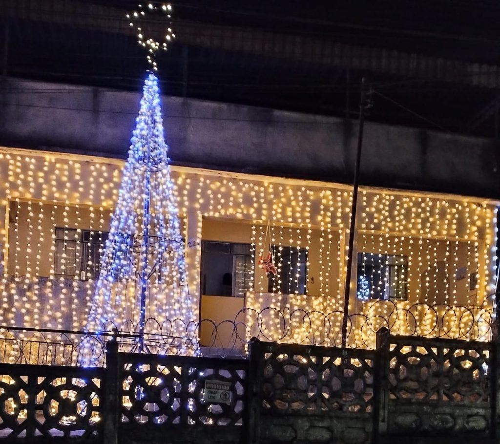 Resgatar o espírito natalino de amor, compaixão, solidariedade e generosidade. Foi com esse propósito que o casal Aline Cristina Morais e seu esposo Valter dos Santos, o conhecido Baixinho, decidiu transformar sua casa em um símbolo de luz e esperança no Bairro São Benedito, em Conselheiro Lafaiete. Há uma semana, o casal acendeu pela primeira vez uma árvore de Natal com mais de cinco metros de altura, instalada na fachada da residência na Rua Santo Antônio de Pádua, nº 221. O enfeite grandioso, acompanhado de uma bela decoração, rapidamente se tornou atração para moradores de toda a região.
