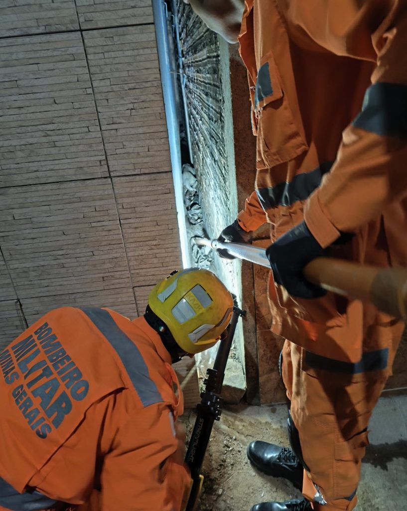No início da noite do dia 25, o Corpo de Bombeiros Militar foi acionado para uma ocorrência envolvendo um cachorro que havia ficado preso entre dois muros na cidade de Alfredo Vasconcelos. Moradores perceberam que o animal não conseguia se movimentar nem sair do local, acionando imediatamente a equipe de resgate. Ao chegar, os bombeiros avaliaram a situação e iniciaram o salvamento utilizando técnicas seguras de captura e contenção animal, garantindo o bem-estar do cachorro e evitando qualquer dano estrutural aos imóveis. Todas as manobras foram executadas no estreito espaço entre os muros, onde a equipe conseguiu acessar o animal e retirá-lo com segurança.