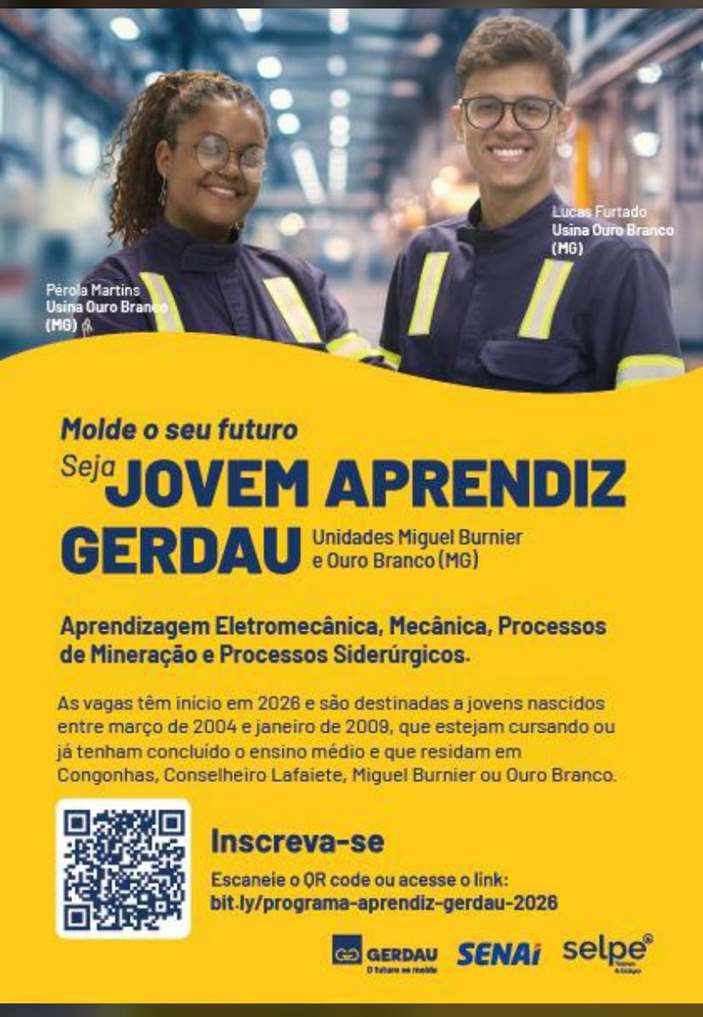 8734896   CALDEIREIRO – 6 meses de experiência na CTPS//  Ensino Fundamental Completo// Confeccionam, reparam e instalam peças e elementos diversos em chapas de metal como aço, ferro galvanizado, cobre, estanho, latão, alumínio e zinco ; fabricam ou reparam caldeiras, tanques, reservatórios e outros recipientes de chapas de aço; recortam, modelam e trabalham barras perfiladas de materiais ferrosos e não ferrosos para fabricar esquadrias, portas, grades, vitrais e peças similares// Candidatos de Ouro Branco, Conselheiro Lafaiete, Congonhas e região. Aceita PCD.  16 meses de experiência na CTPSEnsino Fundamental Completo  A Combinar