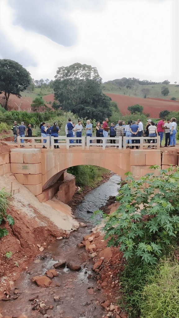 A Prefeitura de Ouro Branco inaugurou, no dia 03 de dezembro, a nova ponte que conecta a comunidade de Olaria ao distrito de Cristais, atendendo a uma demanda antiga dos moradores e garantindo mais segurança e mobilidade para a região. A estrutura foi construída em formato de arco, composta por quatro módulos pré-moldados içados por guindaste — um modelo inovador apresentado pela empresa ValeMix, considerado o primeiro desse tipo no Brasil.