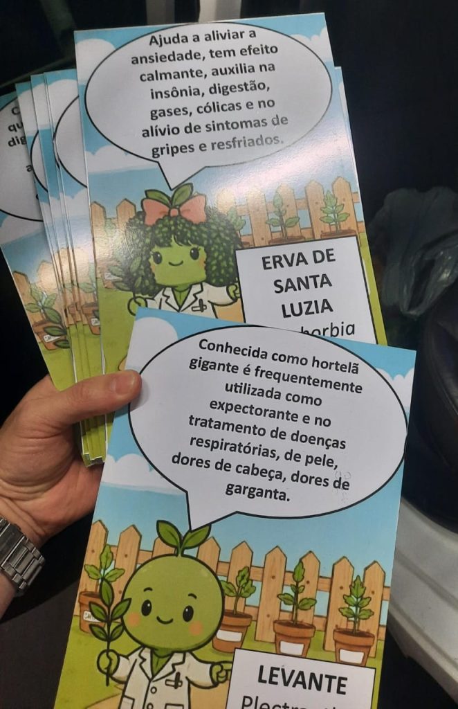 Um dos marcos do projeto é a criação do canteiro de plantas medicinais, batizado de “Farmácia Verde”, que reúne alecrim, babosa, bálsamo, erva-cidreira, erva de Santa Luzia, funcho, guaco, hortelã, levante, macela, manjericão, poejo, São Fidel e tanchagem. Para facilitar o aprendizado, o espaço recebeu plaquinhas com identificação das espécies e suas indicações de uso para sintomas comuns.