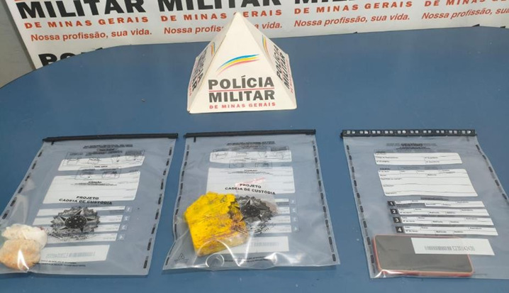 Dando continuidade às diligências, os militares realizaram buscas nos fundos da casa do autor, onde localizaram, enterrados em um pasto, meia barra de maconha e uma pedra de crack de tamanho considerável, reforçando os indícios da prática do tráfico. O homem recebeu voz de prisão em flagrante e foi encaminhado à Delegacia de Polícia Civil, juntamente com todo o material apreendido, incluindo as drogas e um aparelho celular, que também foi recolhido para auxiliar nas investigações.