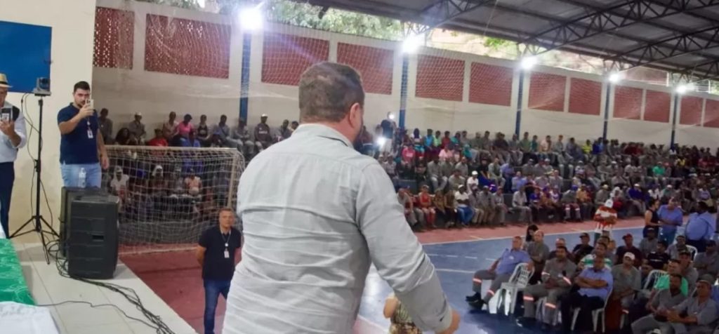 Na foto o deputado Leleco Pimentel fala com os trabalhadores da Usina, em Urucânia