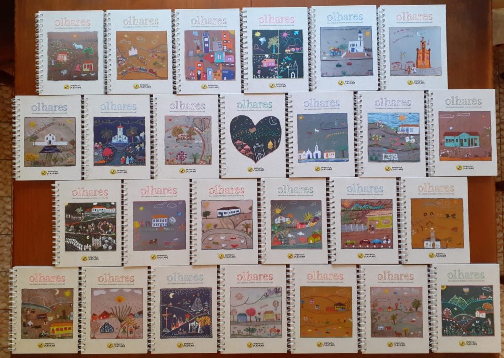 O Bazar ARTE EM CASA de Natal também comercializa os produtos da economia criativa do Ponto de Cultura AMAR, cuja renda se destina à manutenção da sua biblioteca comunitária. São diversos livros e outras publicações, a maioria deles mostrando bordados da mestra Maria Augusta e de suas alunas, como os novos cadernos da coleção “Olhares”. Nestes dias, também acontecerá a pré-venda do calendário de parede 2026, cujo tema é a acessibilidade.