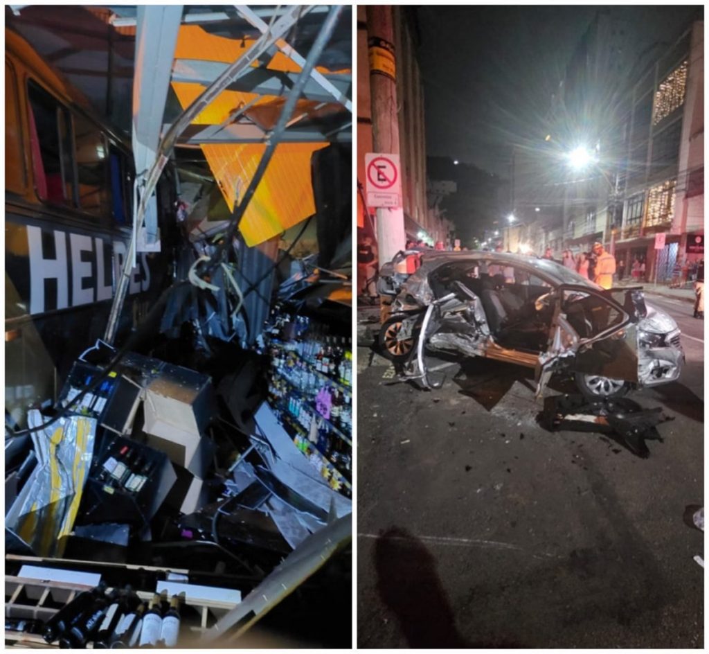 No trajeto, o coletivo bateu em dois automóveis e, em seguida, bateu com força contra a fachada do Supermercado BH, chegando a entrar no estabelecimento. A estrutura do imóvel ficou bastante danificada e, por isso, a Defesa Civil foi acionada.
