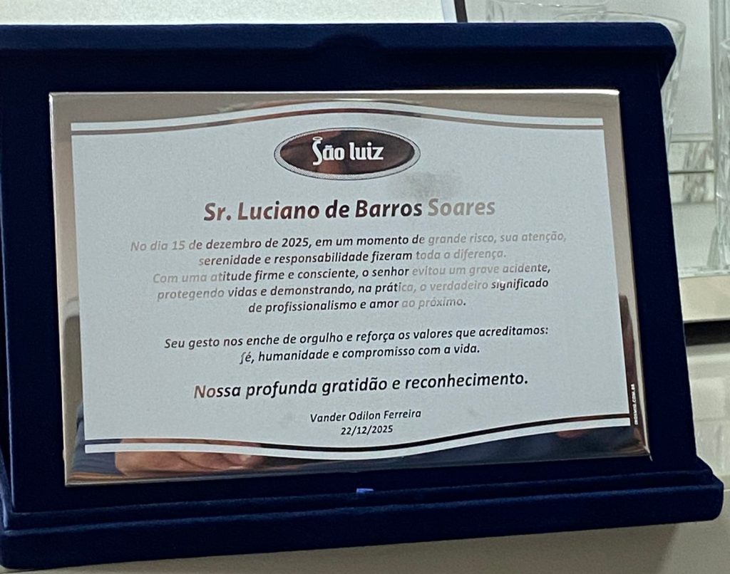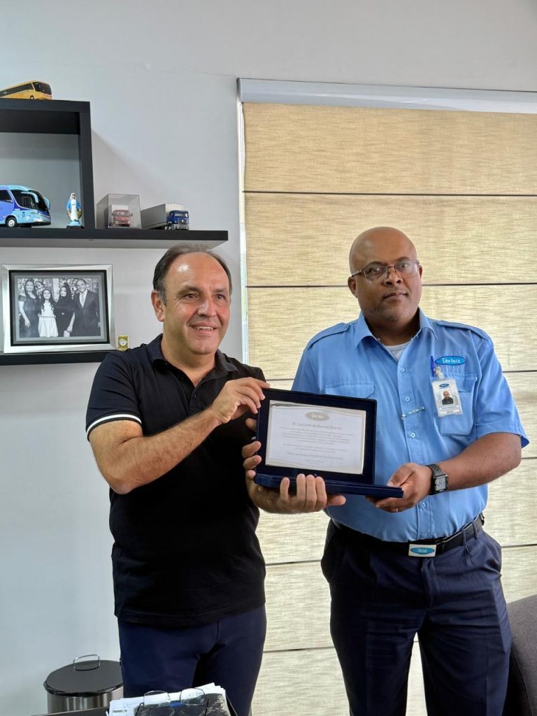 Diante da postura exemplar, o motorista recebeu uma homenagem na manhã desta segunda-feira, na sede da Viação São Luiz, no Bairro Santa Matilde, em Lafaiete. O reconhecimento foi feito pelo proprietário da empresa, Vander Odilon, que destacou o compromisso da companhia com a segurança e exaltou o papel dos profissionais que enfrentam diariamente os desafios das estradas, em especial a BR 040, alvo de constantes acidentes e tragédias, o que aumenta a responsabilidade e investimentos na melhoria e manutenção dos ônibus.
