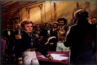 Dom Pedro II foi aclamado em 7 de abril de 1831, no dia da abdicação de seu pai. Foi apresentado ao povo por uma das janelas do paço da cidade, nos braços do seu tutor, José Bonifácio de Andrada e Silva.