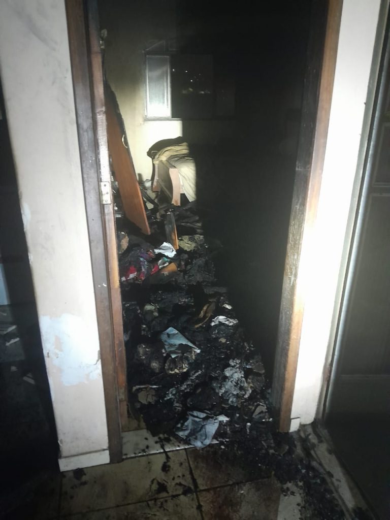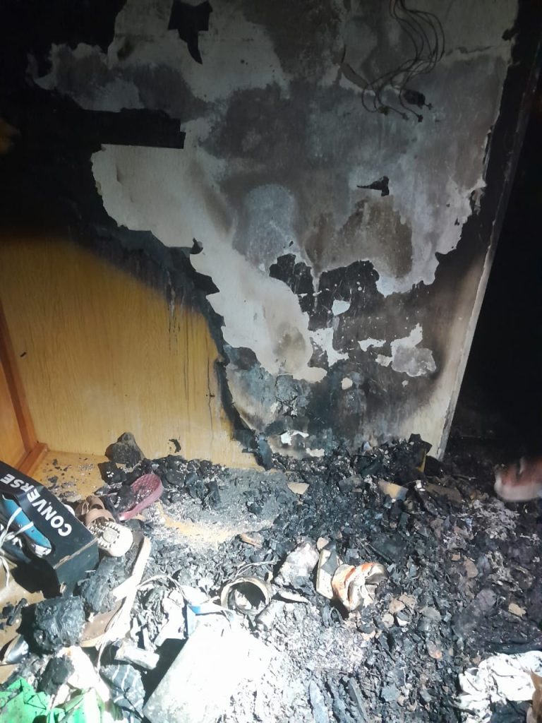 O incêndio causou danos materiais, incluindo a queima parcial de um guarda-roupa de cinco portas, roupas, um televisor de 65 polegadas, um rack de madeira, além de danos no forro de gesso, reboco do teto e acúmulo de fuligem.