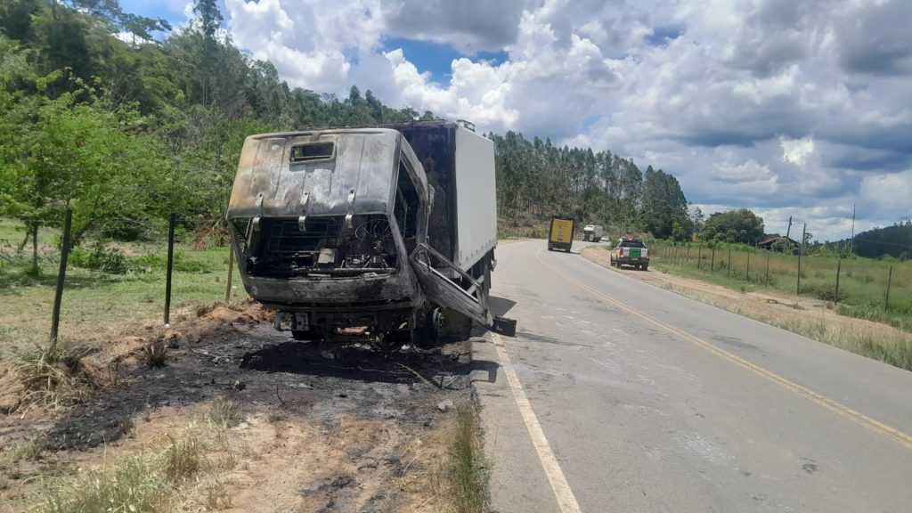 A Polícia Militar Rodoviária atendeu nesta semana um incêndio em caminhão na MGC-120, próximo ao km 748, no município de Leopoldina. O veículo, carregado com frangos congelados, teve a cabine completamente destruída pelas chamas. Durante o incêndio, indivíduos não identificados aproveitaram a situação e saquearam parte da carga, levando 111 caixas de frango, antes de fugir para uma área de mata.