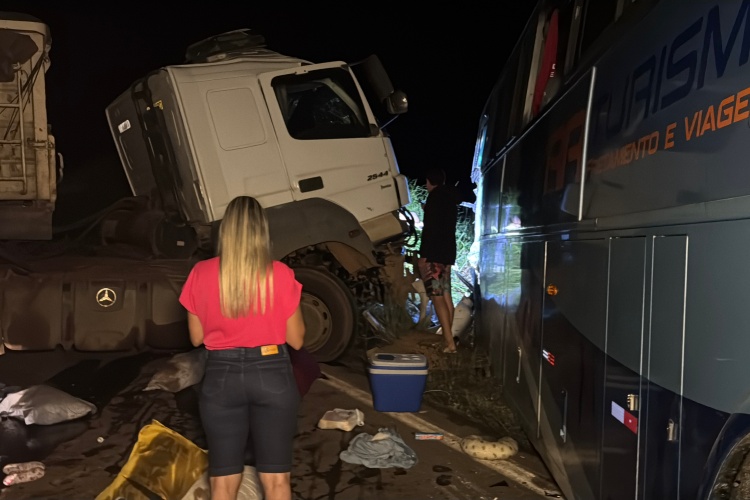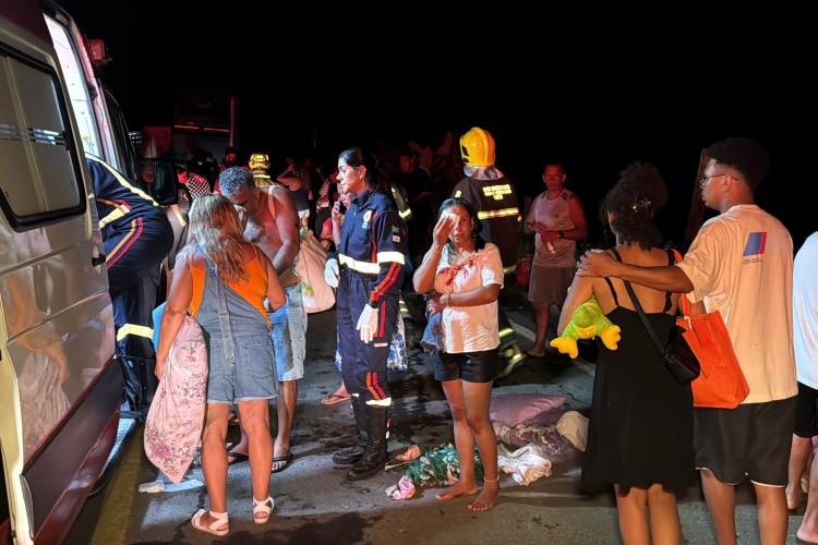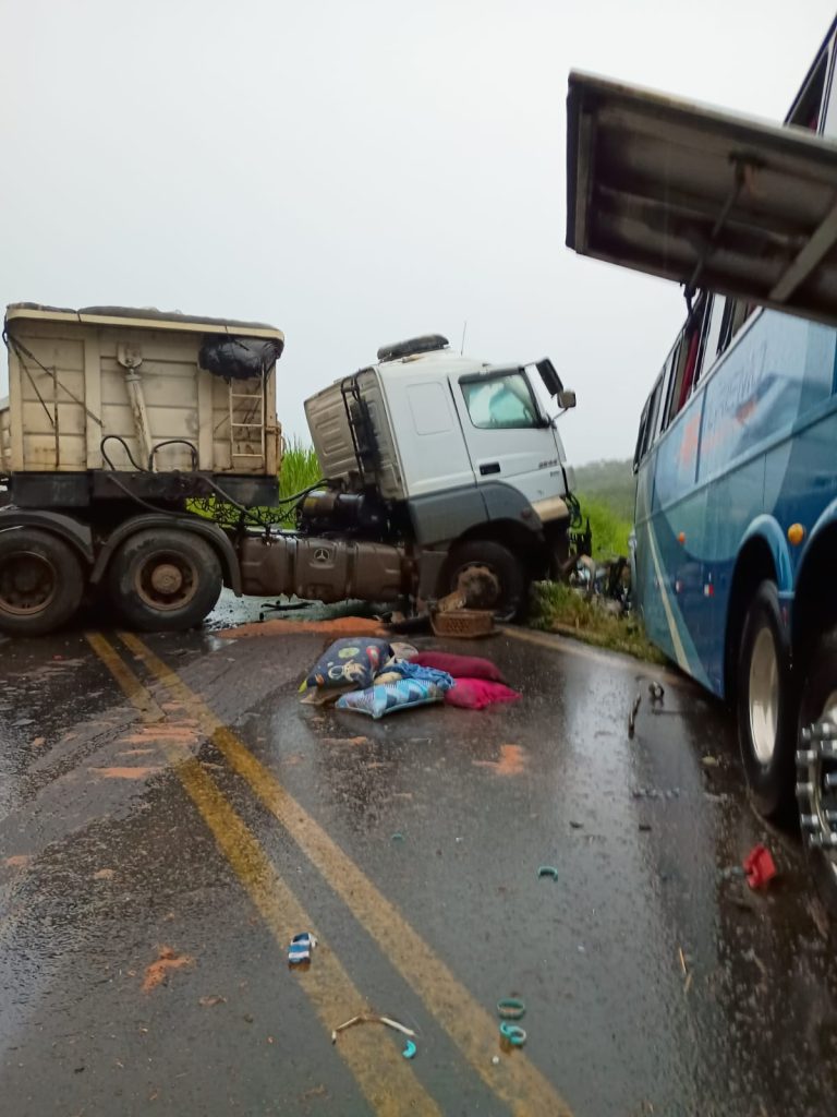 Um grave acidente foi registrado na BR-356, na altura do distrito do Vermelho, em Muriaé, no final da tarde de ontem (19), envolvendo um ônibus de excursão e uma carreta que descia a Serra de Pirapanema. O cenário após a colisão era de desespero, com passageiros ainda tentando entender o que havia acontecido, enquanto equipes do SAMU e do Corpo de Bombeiros realizavam os atendimentos no local. O ônibus transportava cerca de 50 passageiros, moradores de Ouro Branco e Itabirito, na região Central de Minas Gerais, que retornavam de uma excursão à cidade de Guarapari, no Espírito Santo. Com o impacto, várias pessoas ficaram feridas e precisaram ser socorridas.