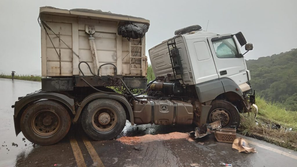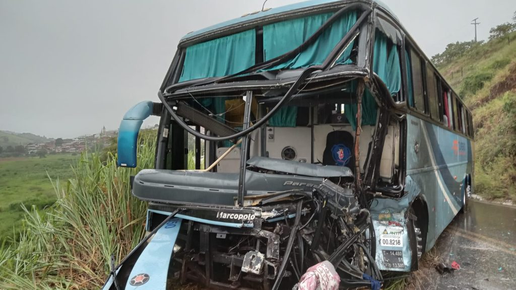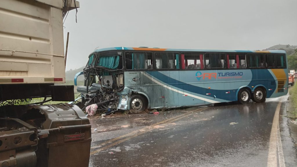 Na noite deste domingo (19), um grave acidente deixou uma vítima fatal e outras 19 pessoas feridas na BR-356, km 242, em Muriaé, Minas Gerais. A ocorrência foi registrada por volta das 23h. Segundo informações da Polícia Militar Rodoviária, o sinistro envolveu um ônibus de turismo modelo Scania, que seguia do Espírito Santo para a cidade de Ouro Branco transportando cerca de 50 passageiros, e um caminhão-trator com reboque, licenciado em Muriaé.