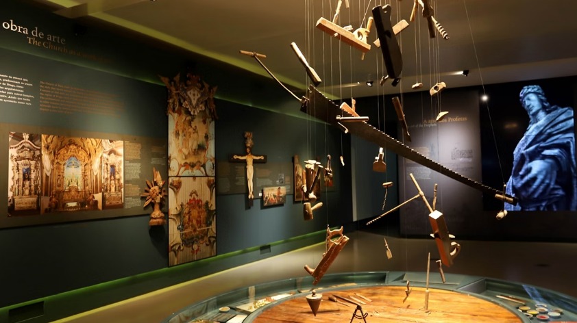 Em uma caminhada por salas fechadas, a viagem no tempo se dá pelo contato com ex-votos (objetos oferecidos por fiéis em agradecimento por graças alcançadas), pelo passo a passo da construção da basílica, pela história das capelas e esculturas que contam a Paixão de Cristo e até por ferramentas semelhantes às usadas por Aleijadinho na confecção do maior conjunto de arte colonial do país. Trata-se da exposição e da expografia permanentes do Museu de Congonhas, o primeiro do Brasil instalado no próprio sítio histórico.