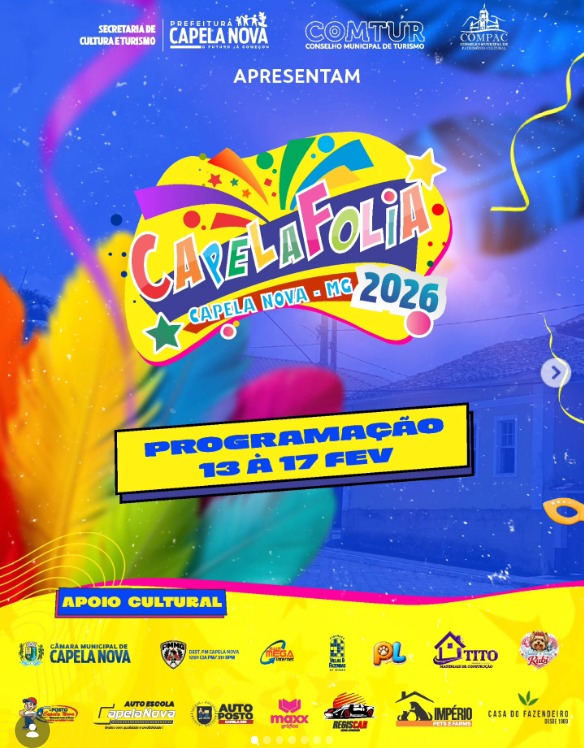 Com essa mistura de ritmos, blocos tradicionais e atrações para todas as idades, Capela Nova se reafirma como um destino imperdível para quem busca um Carnaval vibrante e acolhedor em Minas Gerais.