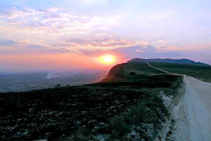 Quem sobe até o Mirante da Serra encontra uma vista ampla da região, com belos vales e montanhas. O local é bastante procurado, principalmente ao entardecer, quando o pôr do sol colore o céu e transforma o cenário. Crédito: Glauco Umbelino/wikimédia Commons