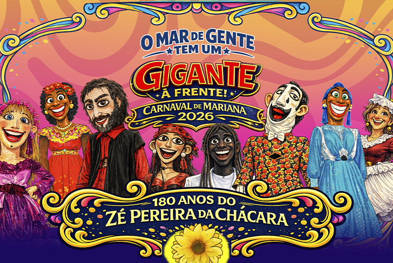 Diretamente da Toca do Zé Pereira, o Carnaval 2026 em Mariana volta a valorizar os bens culturais do município e traz como tema o tradicional grupo carnavalesco que, neste ano, completa 180 anos.