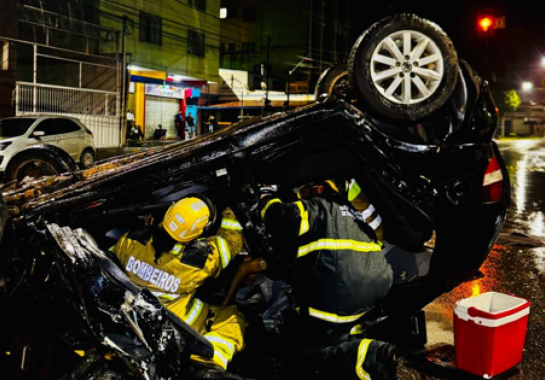De acordo com a Polícia Militar, o motorista perdeu o controle da direção e capotou na via urbana. Para acessar a vítima, os bombeiros precisaram retirar a porta traseira e forçar a abertura da porta dianteira do lado oposto ao motorista.