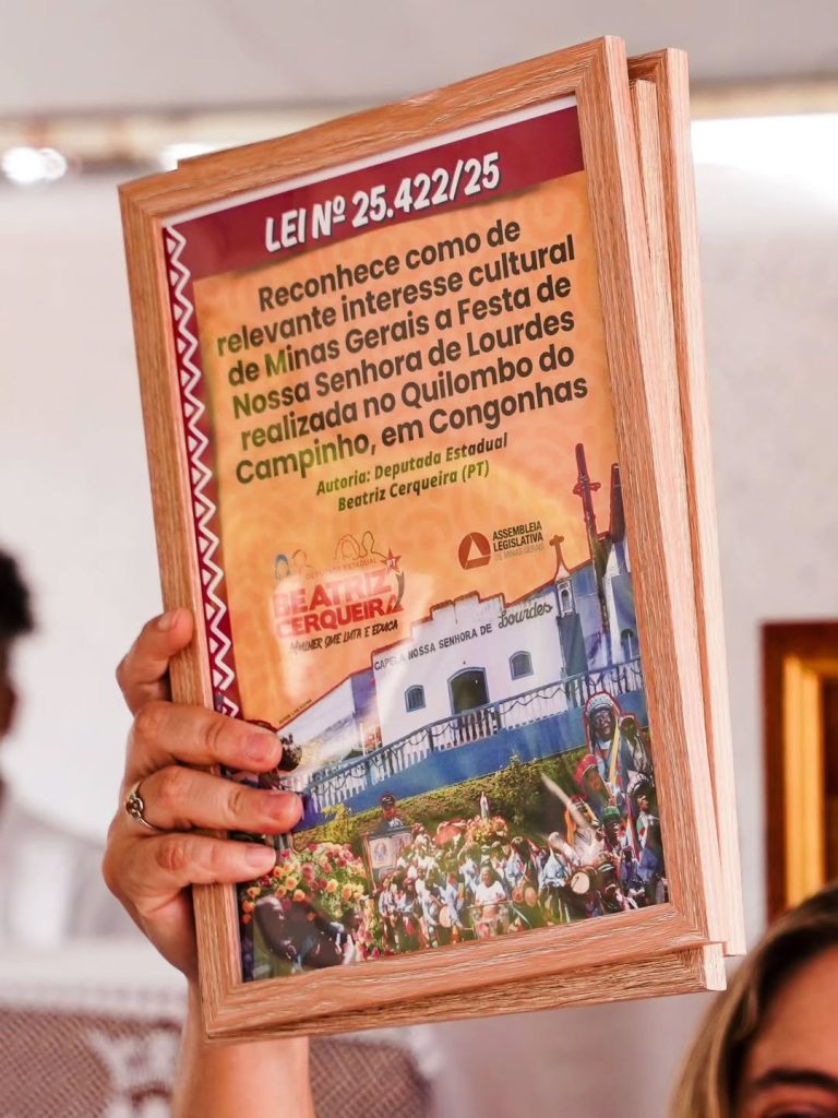 O Quilombo do Campinho, em Congonhas, viveu um momento de muita fé e emoção com a Festa de Nossa Senhora de Lourdes no domingo (8/2).É uma celebração que vai muito além da religiosidade. Reúne cultura viva, tradição e resistência! São saberes e costumes passados de geração em geração, fortalecendo a identidade e a história da comunidade quilombola. Durante a celebração, a deputada estadual Beatriz Cerqueira (PT) realizou a entrega simbólica da Lei 25.422/25, de sua autoria, que reconhece a Festa de Nossa Senhora de Lourdes como de interesse cultural para Minas Gerais.