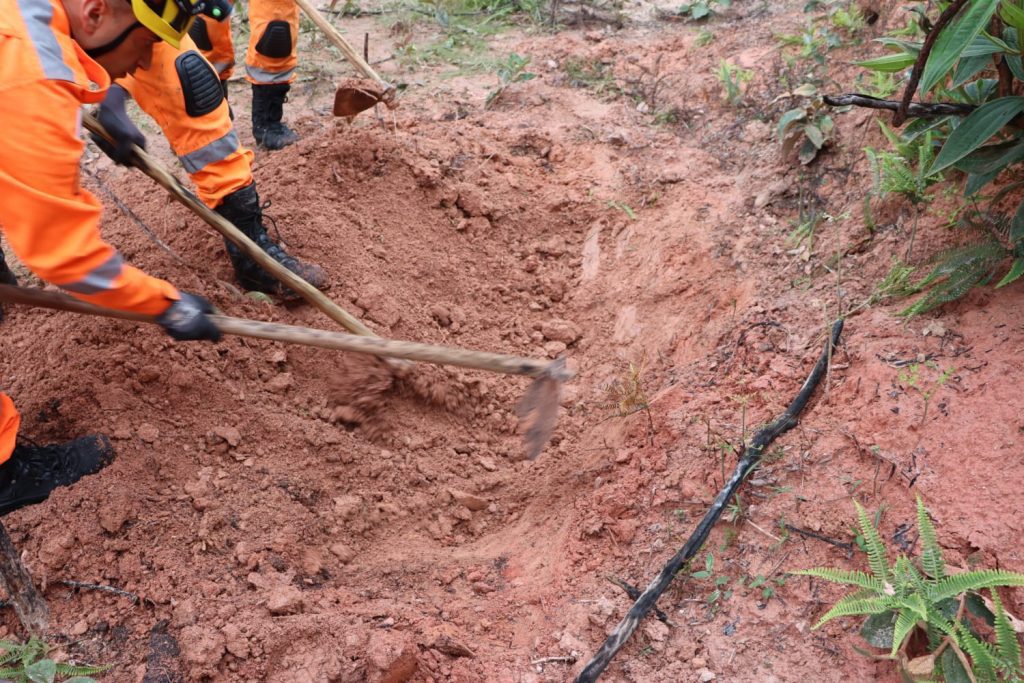 Ao chegarem ao local, os militares confirmaram a situação e constataram tratar-se de corpo humano enterrado. A Polícia Militar de Minas Gerais realizou a preservação da área, garantindo o isolamento do local para os trabalhos técnicos.A equipe do Corpo de Bombeiros procedeu à retirada do corpo de forma técnica e segura, observando os protocolos operacionais e assegurando a integridade do local até a conclusão da atuação. Após a retirada, a Polícia Civil de Minas Gerais realizou os trabalhos de perícia e adotou as providências legais cabíveis, conforme estabelece a legislação vigente. Não houve registro de intercorrências durante o atendimento da ocorrência.