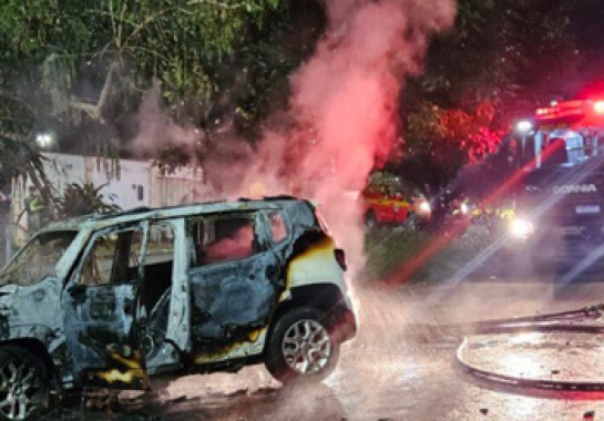 De acordo com o Corpo de Bombeiros, o 8º Batalhão foi acionado por volta de 23h30 para apoiar a Polícia Militar em uma ocorrência envolvendo um veículo em fuga que havia colidido contra uma árvore e pegado fogo na Avenida Alberto Martins Fontoura Borges, no Bairro São Benedito.