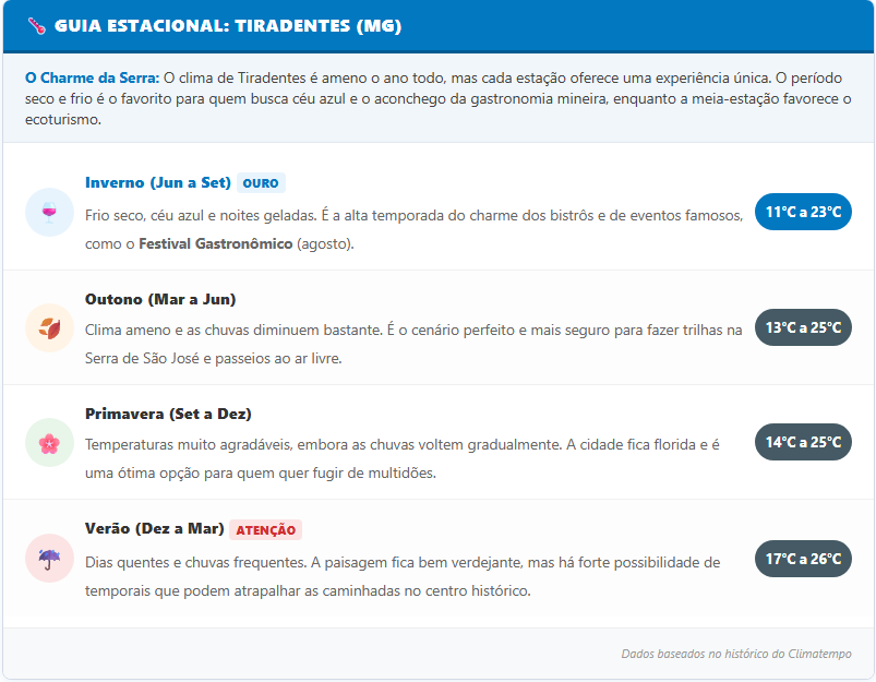 🌡️ Guia Estacional: Tiradentes (MG)