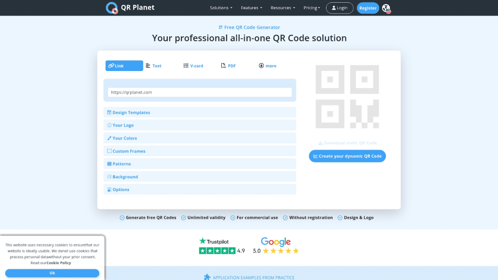 QRDGratuito (Premium por US$ 8/mês)QR codes dinâmicos, gestão de links, rastreamento de escaneamentosOrganizadores de eventosWeb