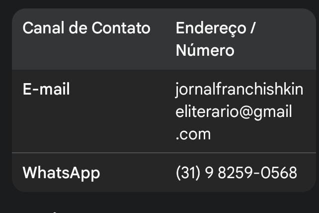 - O quê: 4ª Edição do Jornal Francishkine Literário e Cultural.