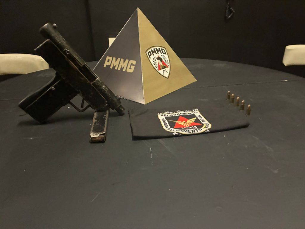 As diligências continuaram em uma área de mata próxima, onde os militares localizaram um saco contendo diversos materiais ilícitos. Entre os itens apreendidos estavam uma submetralhadora de fabricação artesanal calibre 9 milímetros, municiada com cinco cartuchos, uma barra de maconha de aproximadamente 30 centímetros, quatro tabletes menores da mesma substância e uma balança de precisão.Outro jovem de 19 anos foi abordado nas proximidades e recebeu voz de prisão por envolvimento direto nas ameaças denunciadas anteriormente.