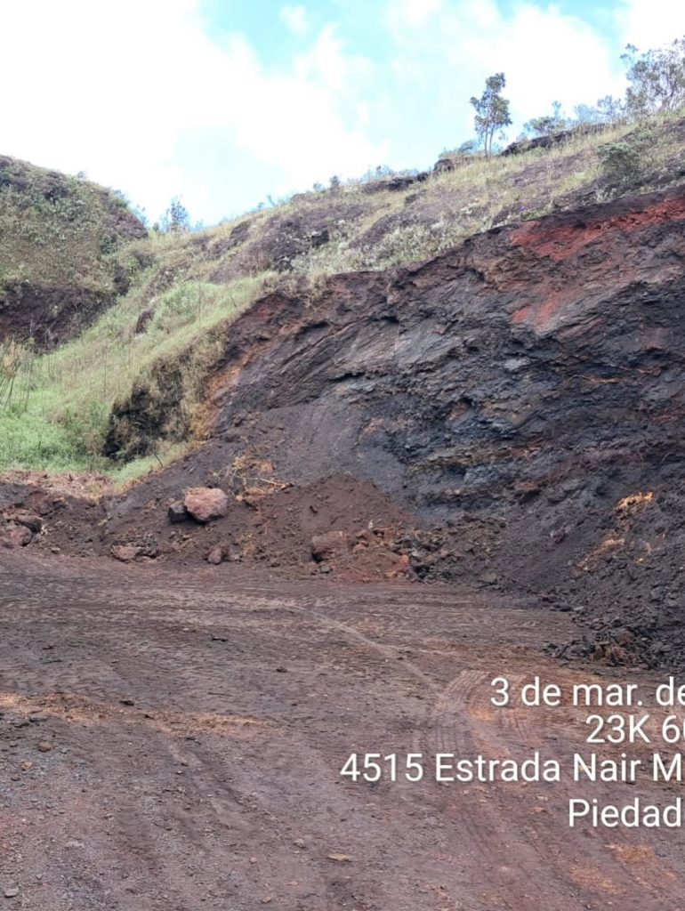 No dia 3 de março de 2026, realizamos registros fotográficos que mostram cortes recentes no terreno, abertura de frente de escavação e movimentação de material mineral na região de Piedade do Paraopeba, a cerca de 1.430 metros de altitude. Informações obtidas no local indicam que a movimentação teria começado aproximadamente duas semanas antes das imagens.Diante da situação, comunicamos os órgãos responsáveis pela fiscalização ambiental. Até o momento, apenas a Polícia Militar esteve no local, registrando um boletim de ocorrência.