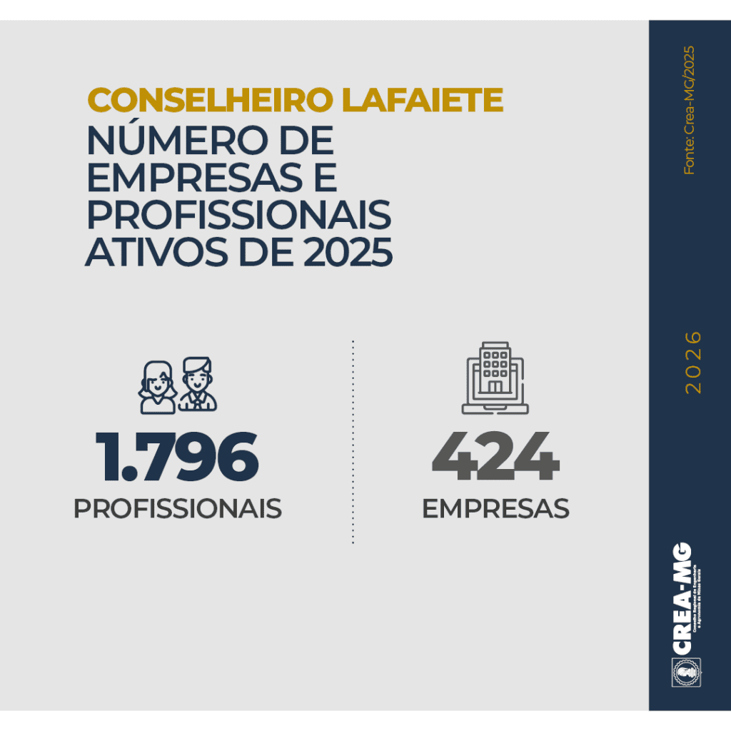O Conselho Regional de Engenharia e Agronomia de Minas Gerais (Crea-MG) realizou, em 2025, um total de 73.864 ações de fiscalização nos 853 municípios do estado. Em Conselheiro Lafaiete, na Região Metropolitana de Belo Horizonte, foram realizadas cerca de 900 ações ao longo do ano, que resultaram na identificação de 83 irregularidades.