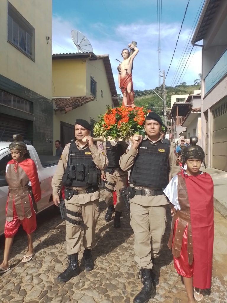 Como já é tradição, militares da Polícia Militar de Minas Gerais participaram da procissão em honra a São Sebastião, padroeiro dos militares, realizada nesta manhã (8) em Lamim.A ação contou com a participação da viatura 32500, composta pelo sargento Vieira, sargento Araújo, sargento Barbosa (militar voluntário de folga) e cabo Conrado Miranda (militar voluntário de folga). Também esteve presente a viatura de apoio 32499, do município de Catas Altas da Noruega, composta pelo sargento Franco e soldado Thadeu.
