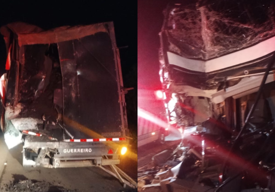 De acordo com a Polícia Rodoviária Federal (PRF), o acidente foi uma colisão traseira entre um ônibus e um caminhão que transportava carvão. Ao todo, cinco pessoas ficaram gravemente feridas, mas não houve registro de mortes.