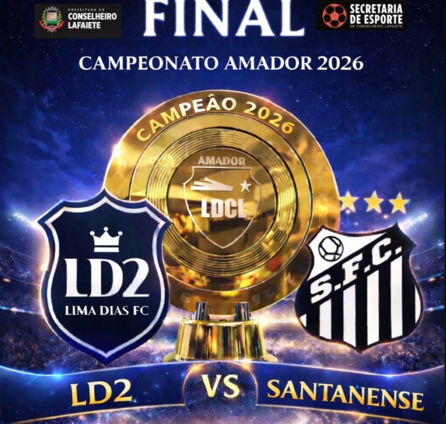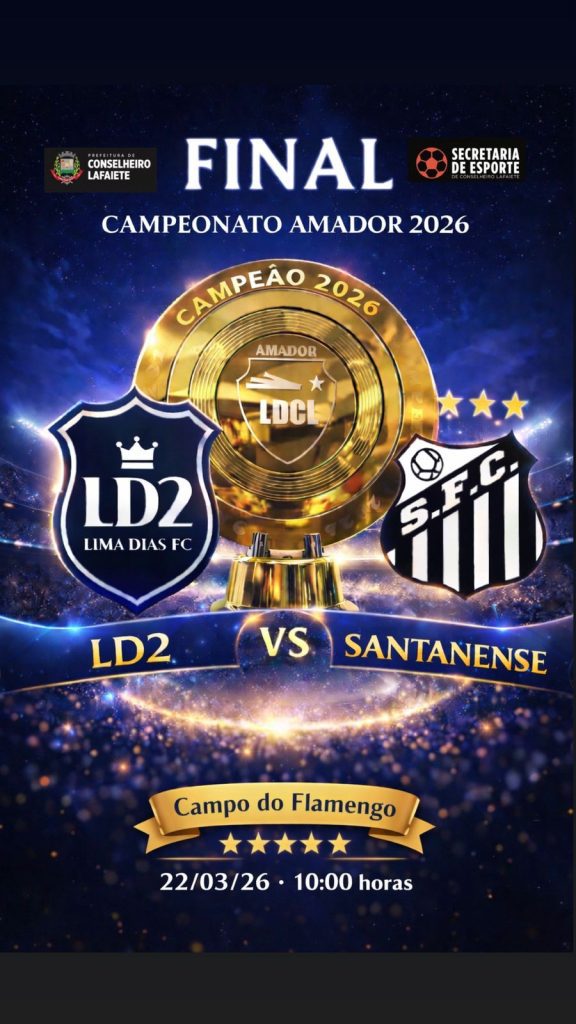 O futebol amador tem dessas coisas que o tornam especial. Ele não vive apenas de resultados. Vive de camisas defendidas com orgulho, arquibancadas improvisadas, torcedores apaixonados e rivalidades que atravessam cidades vizinhas.É exatamente esse clima que deve tomar conta da grande final do Campeonato Amador 2026. No próximo domingo, 22 de março, às 10 horas, o tradicional Campo do Flamengo, localizado na rua Victor Bhering, em Lafaiete, recebe a decisão entre LD2 e Santanense, um confronto que coloca frente a frente Lafaiete e Santana dos Montes em um verdadeiro clássico regional.