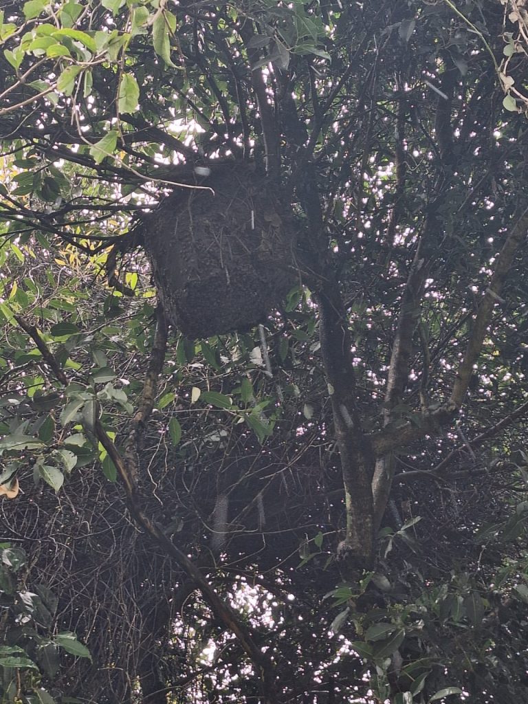 De acordo com a solicitante, os insetos estavam instalados em um lote vago ao lado de sua residência e atacavam dois equinos. A moradora permaneceu abrigada dentro de casa para se proteger das abelhas.